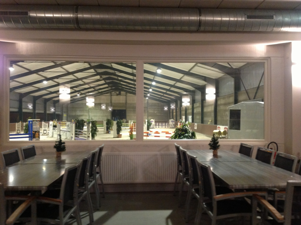 Wij beschikken over twee binnenpistes (27m x 70m) en (20m x 40m) met geopad bodem en één buitenpiste (65m x 80m) met eb-en-vloed Poels bodem.